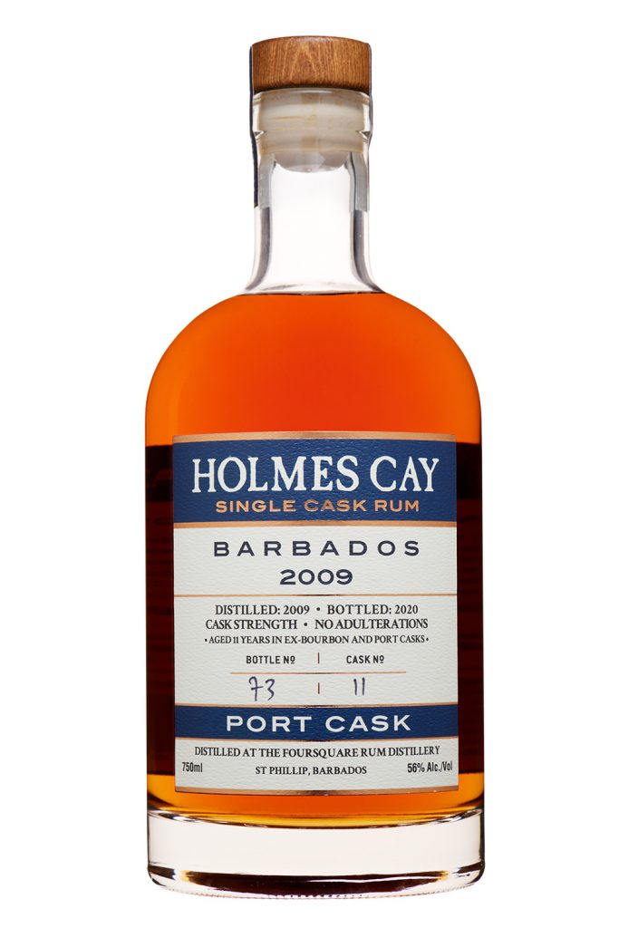 This blend of column and pot still rum was distilled at Foursquare in Barbados, aged 8 years in Barbados and 2 years in the UK in ex-bourbon casks. The rum was then placed into port casks in New York State and aged for an additional year. Holmes Cay Barbados 2009 Port Cask is bottled at cask strength, or 56% alcohol by volume. Only two casks — 522 bottles — of this premium, 11-year old rum are available.