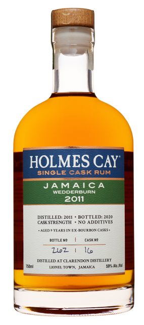 Holmes Cay Jamaica Wedderburn 2011 edition, a medium ester, 100% pot still rum, was distilled in 2011 at the Clarendon Distillery, Jamaica. It was tropically aged for 3 years in Jamaica in ex-bourbon casks, with 7 years further aging in the UK. It was bottled in 2021 in New York State. Aging alone creates the complex flavors of the Jamaica Wedderburn 2011. No sugar, no color, and no other flavors were added in the making of this rum. The Jamaica Wedderburn 2011 is bottled at cask strength, or 59% alcohol by volume. Four casks containing 1,050 bottles of this premium, 10-year old rum are available.